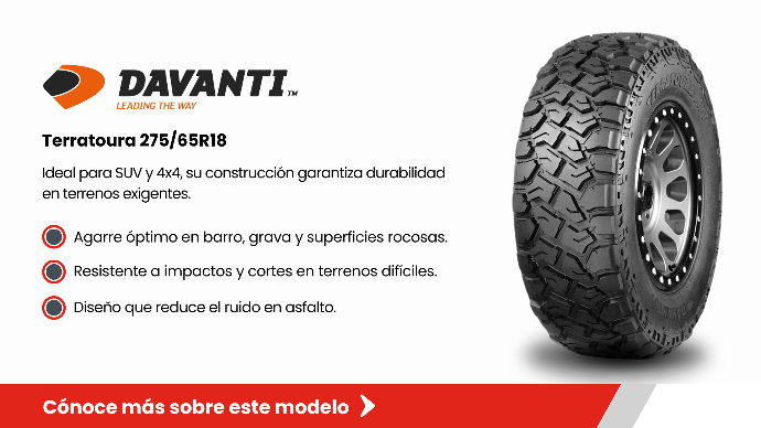 Máxima tracción y durabilidad para tus aventuras todo terreno.